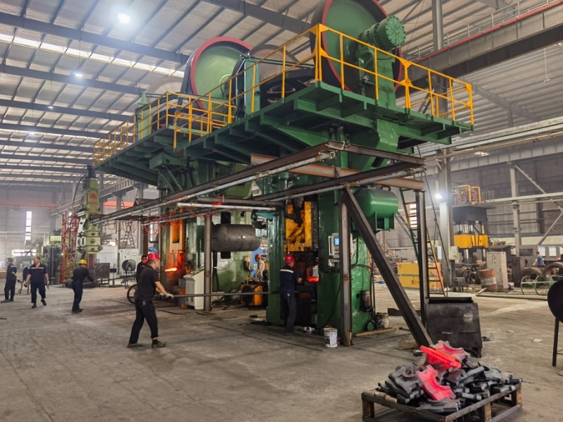 8月底,公司新建的8000吨锻造生产线正式投产。该生产线由两台双盘摩擦压力机(J53-8000B、J53-1600C)与2T全液压单臂式自由锻电液锤、全自动850辊锻机、操作机、以及1600KW-IGBT中频炉、闭式冷却塔、供配电系统等设施设备构成,总投资995.86万元。